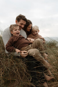 When you think of a newborn photoshoot, most people tend to imagine a white studio, babies posed on a nest of blankets and tired but glowing parents cradling their newest addition. Beautiful, serene, but also not the only way to do a newborn photoshoot, especially when older siblings are involved.